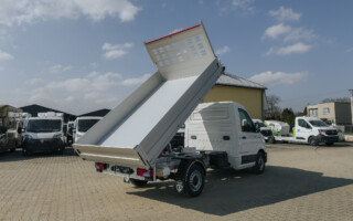 Sklápěcí nástavba na podvozku MAN TGE 4×4 s třístranným otevíráním pro MAN Truck & Bus Czech Republic s.r.o. Hydraulika zahrnuje elektrické …