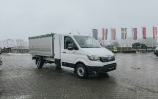 V lednu se u nás pracovalo na různých typech nástaveb – mimo jiné i na tomto třístranném sklápěči na podvozku MAN TGE …